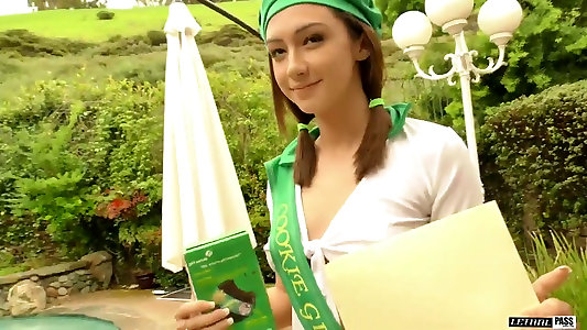 Nice slim youthful lady in girlscout uniform loves assjob