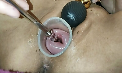 Insertion Semen Cum in Cervix Wide Opening Up Pussy Speculum