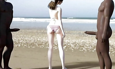 White Girl Gets Blacked On The Beach By 2 Bbcs