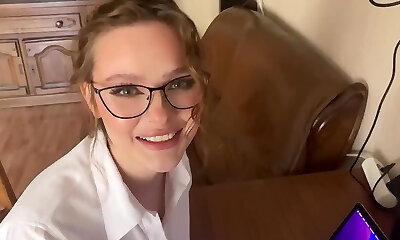 Nerdy stepsis exposes her sex-positive side and begs for facial - POV