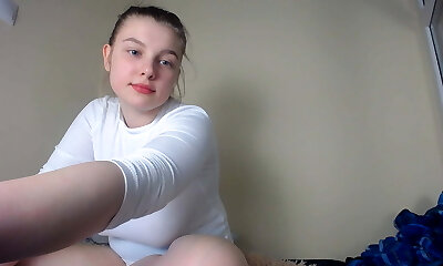 Young 18 year old girl blogger with a humid pussy, slender student